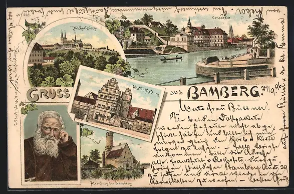 Lithographie Bamberg, Concordia, Alte Hofhaltung, Michaelsberg
