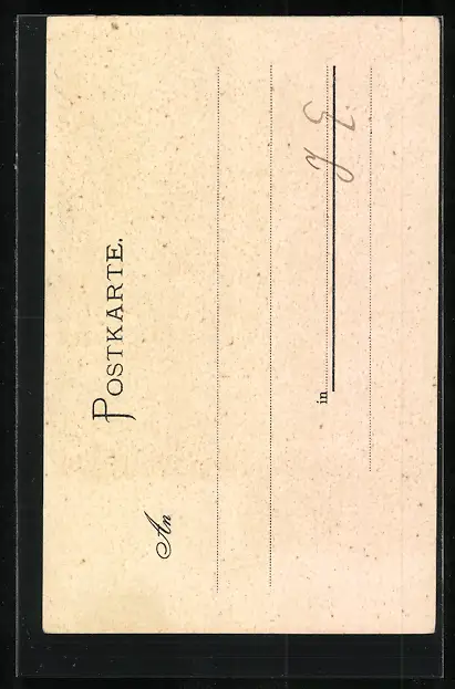 Personenbezogene Daten auf der Rückseite der Karte wurden durch blauen Textmarker unkenntlich gemacht. Die blauen Stellen sind auf die Vorderseite durchgeweicht und wirken sich negativ auf das Postkartenfoto aus