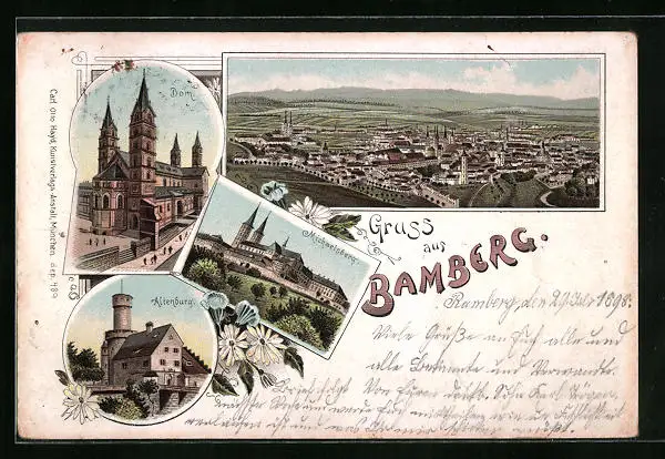 Lithographie Bamberg, Totalansicht, Dom, Michelsberg