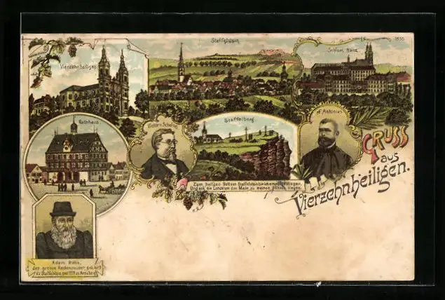Lithographie Banz, Schloss Banz, Kirche Vierzehnheiligen, Rathhaus