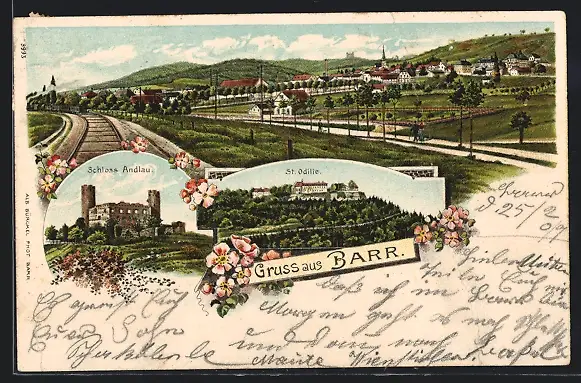 Lithographie Barr, Schloss Andlau, St. Odilie