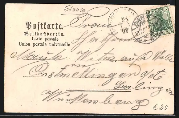 gelaufen 1907, Bugspur re. vertikal, guter Zustand
