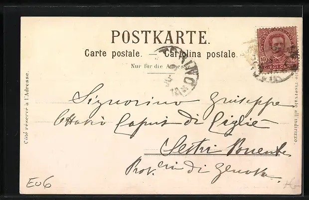 Personenbezogene Daten auf der Rückseite der Karte wurden durch blauen Textmarker unkenntlich gemacht. Die blauen Stellen sind auf die Vorderseite durchgeweicht und wirken sich negativ auf das Postkartenfoto aus