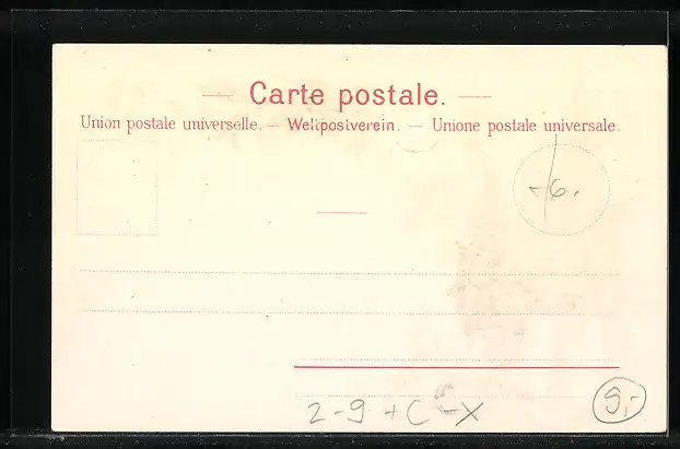 Personenbezogene Daten auf der Rückseite der Karte wurden durch blauen Textmarker unkenntlich gemacht. Die blauen Stellen sind auf die Vorderseite durchgeweicht und wirken sich negativ auf das Postkartenfoto aus