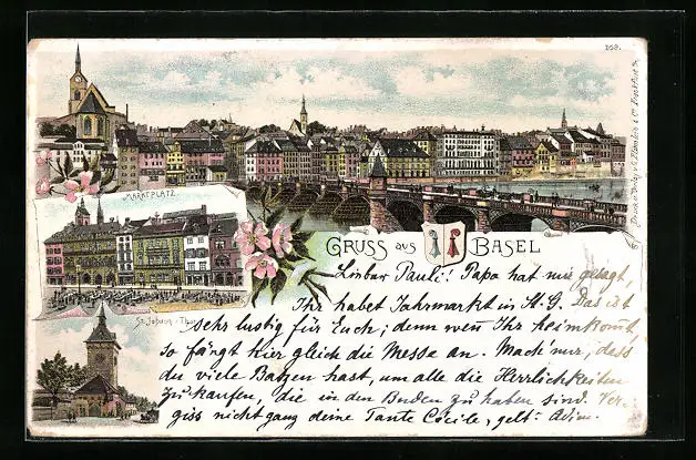 Lithographie Basel, Marktplatz, St. Johann-Thor