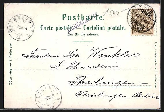 gelaufen 1898, Eckknick re. oben, guter Zustand