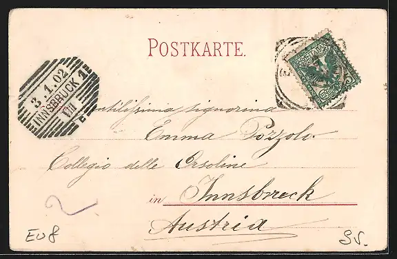 gelaufen 1902, Eckknick re. unten, minimaler Einriss re. mittig, guter Zustand