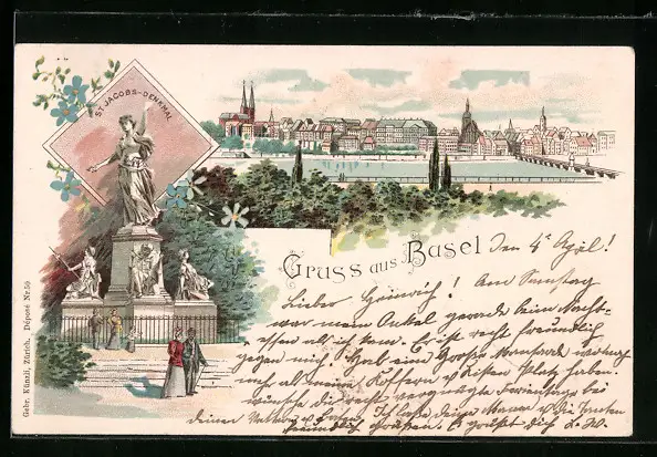 Lithographie Basel, St. Jacobs-Denkmal, Panorama