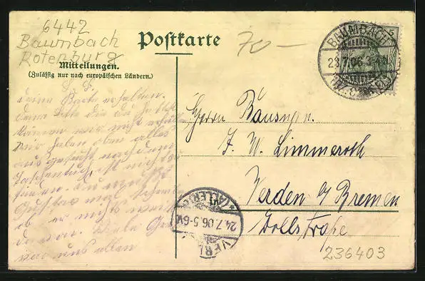 Weitere Ansichtskarten zur Postleitzahl 36211