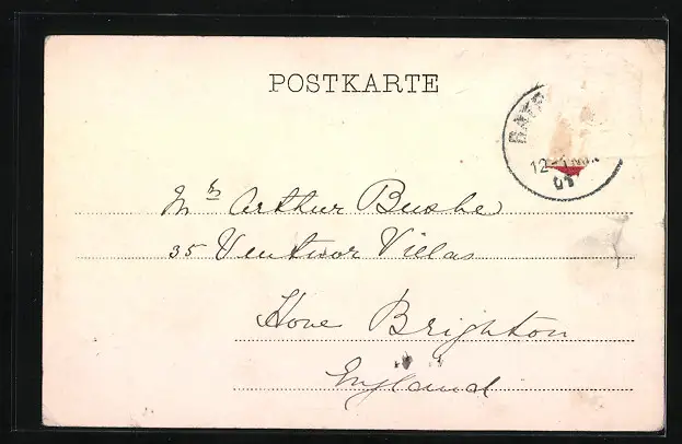 gelaufen, Briefmarke entfernt, rückseitig Oberflächenschaden, guter Zustand