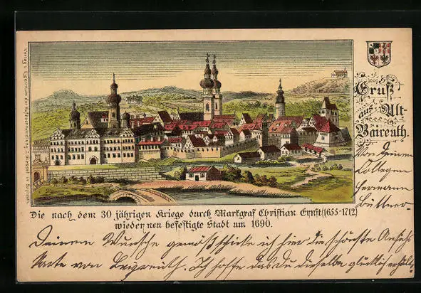 Lithographie Bayreuth, Histrorische Darstellung der neu befestigten Stadt um 1690