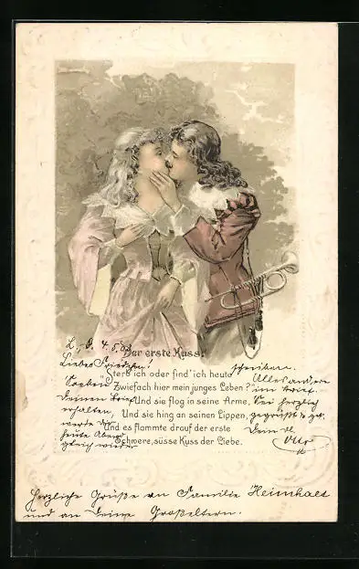 Lithographie Behüt Dich Gott! Der erste Kuss