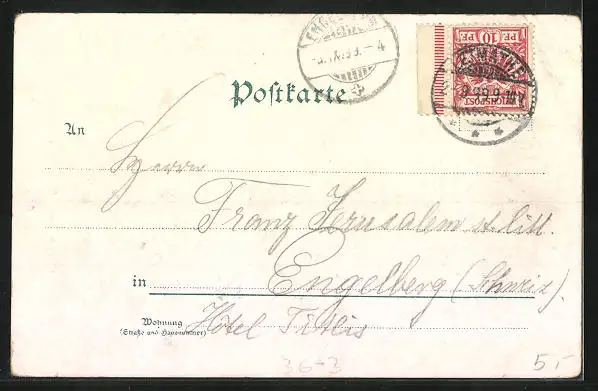 gelaufen 1899, Eckknick oben li., guter Zustand