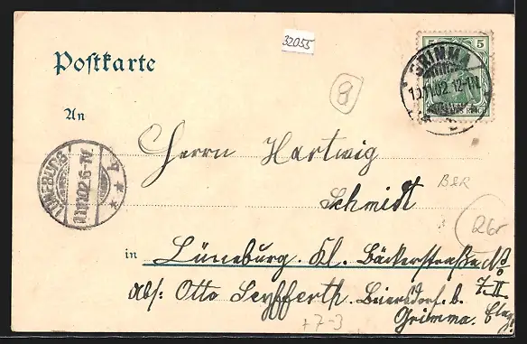 gelaufen 1902, rückseitig Klebe- und Papierreste, guter Zustand