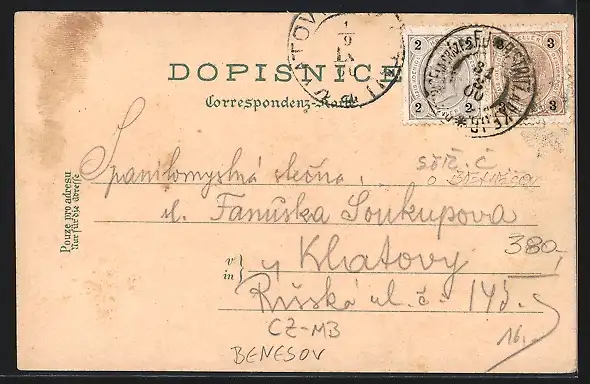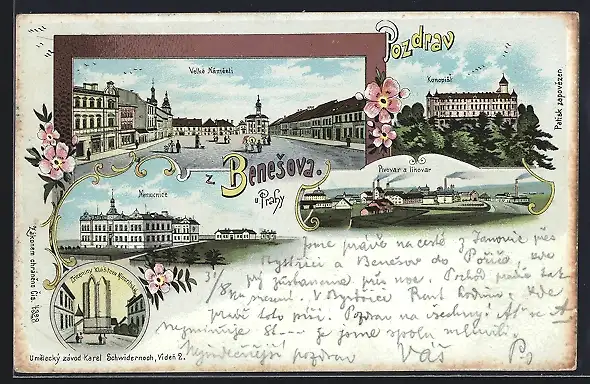 Lithographie Benesov, Velke Namesti, Nemocnice, Konopist
