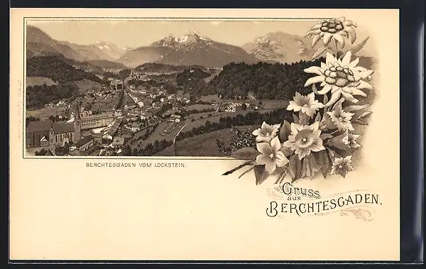 Lithographie Berchtesgaden, Ansicht vom Lockstein aus