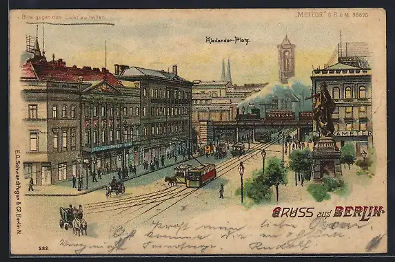 Lithographie Berlin, Alexanderplatz, Halt gegen das Licht