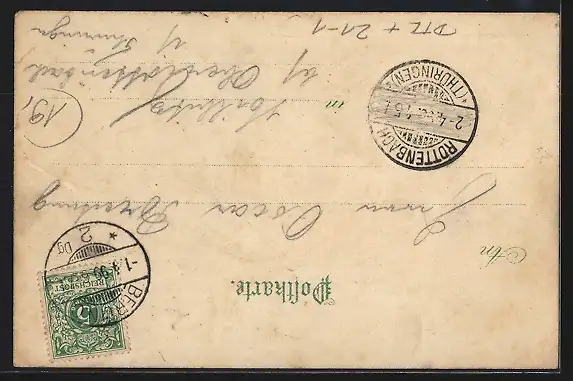 gelaufen 1899, Eckknicke re. oben u. li. unten, guter Zustand