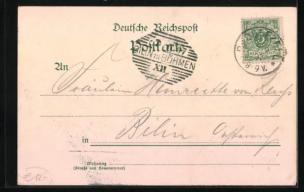 gelaufen 1897, Eckknicke li. oben und re. unten, guter Zustand