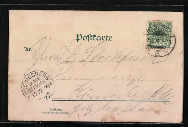 gelaufen 1899, Eckknick unten re., guter Zustand