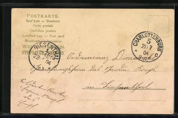 gelaufen 1904 als Feldpost, Bugspur links mittig, guter Zustand