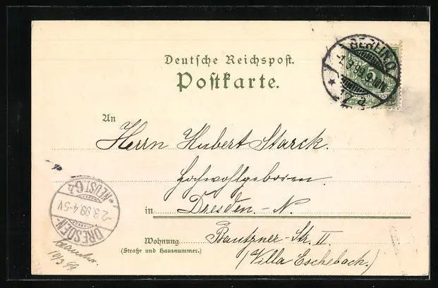 gelaufen 1899, Eckknick oben li. und unten re., guter Zustand