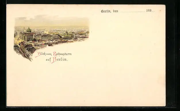 Lithographie Berlin, Blick vom Rathausturm auf Berlin