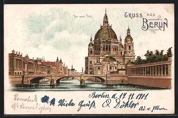 Lithographie Berlin, Blick zum Neuen Dom
