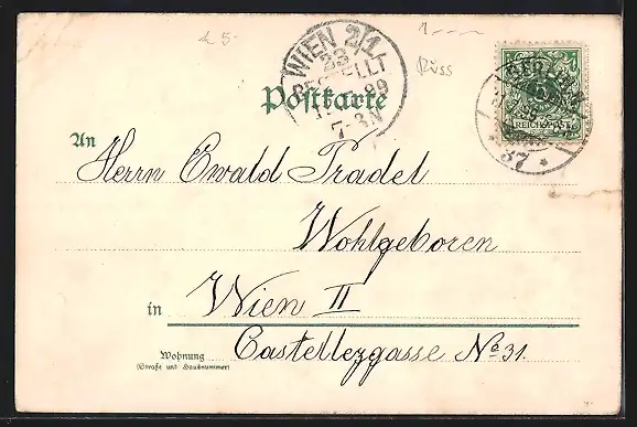 gelaufen 1899, Stempelspur, Eckknick rechts oben, guter Zustand