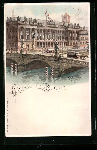 Lithographie Berlin, Börse und Friedrichsbrücke, Burgstrasse