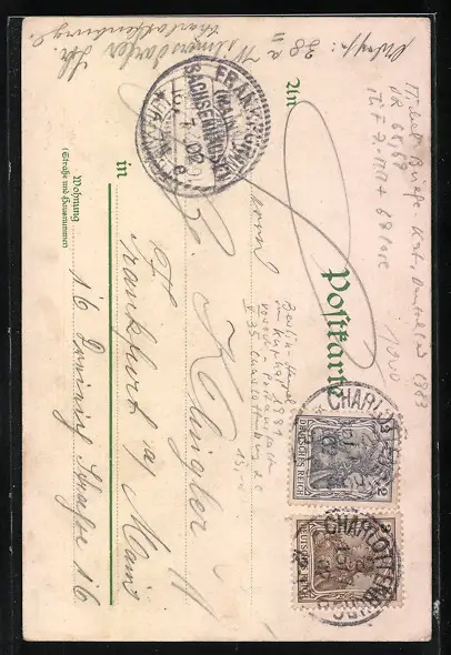 gelaufen 1902, Eckknick unten li., guter Zustand