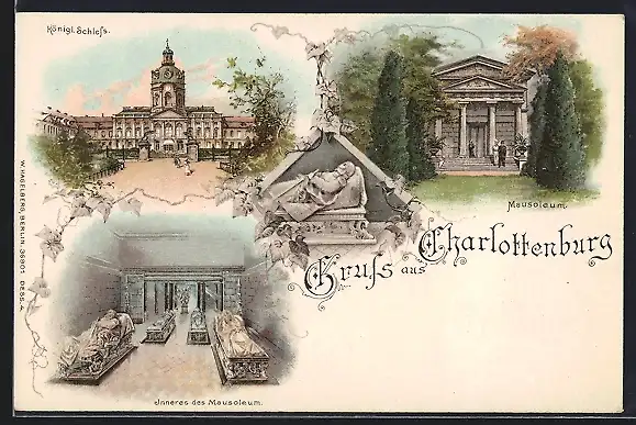 Lithographie Berlin-Charlottenburg, Schloss und Mausoleum