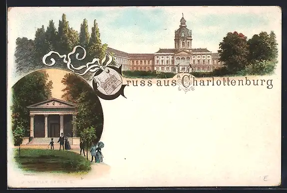Lithographie Berlin-Charlottenburg, Stadtschloss, Mausoleum, Wappen