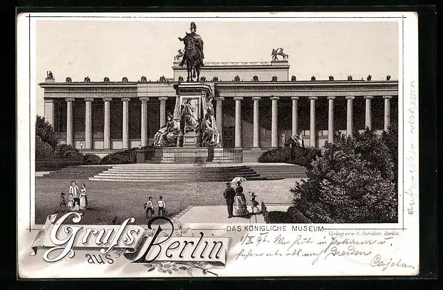 Lithographie Berlin, Das königliche Museum mit Denkmal