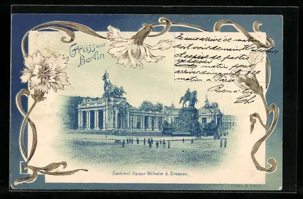 Lithographie Berlin, Denkmal Kaiser Wilhelm d. Grossen