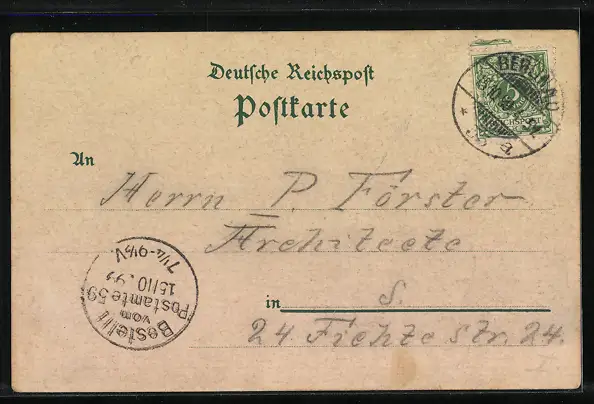 gelaufen 1899, Eckknick re. oben, guter Zustand