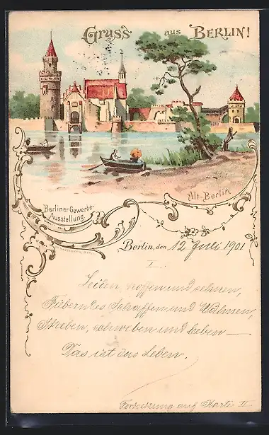 Lithographie Berlin, Gewerbe-Ausstellung, Flusspartie