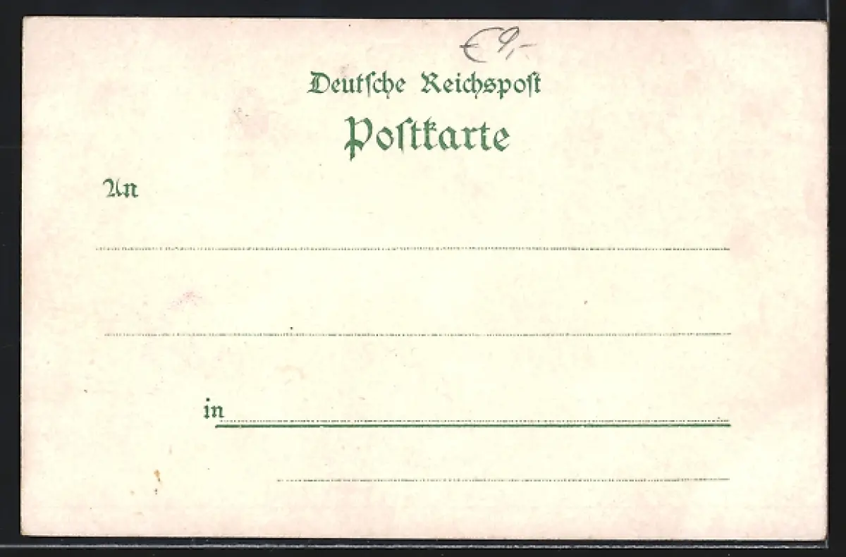 Personenbezogene Daten auf der Rückseite der Karte wurden durch blauen Textmarker unkenntlich gemacht. Die blauen Stellen sind auf die Vorderseite durchgeweicht und wirken sich negativ auf das Postkartenfoto aus