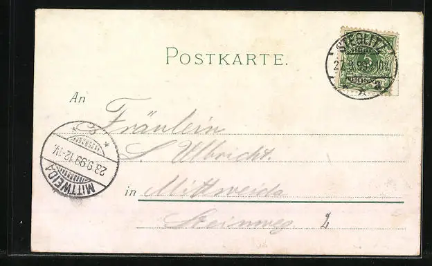 gelaufen 1899, Eckknick oben li., Bugspur oben li., guter Zustand