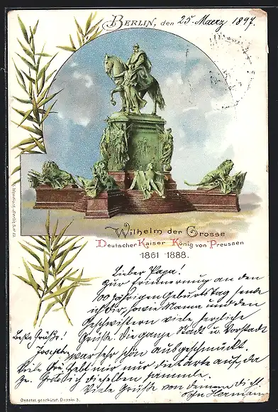 Lithographie Berlin, Kaiser Wilhelm I.-Denkmal