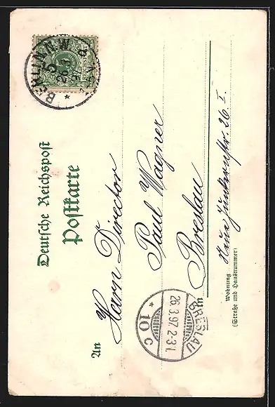 gelaufen 1897, Eckknick unten re., Stempelspur, guter Zustand