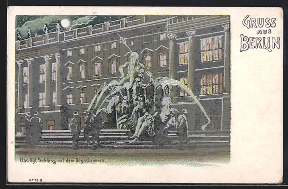 Lithographie Berlin, Kgl. Schloss mit dem Begasbrunnen