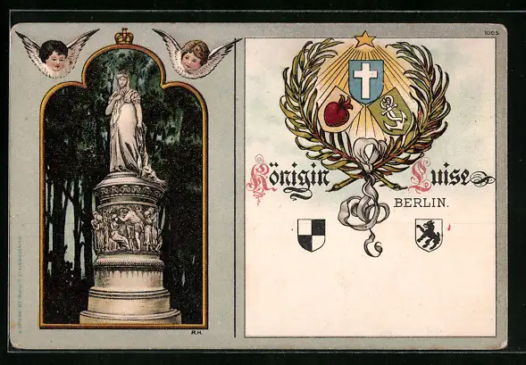 Lithographie Berlin, Königin Luise-Denkmal, Wappen