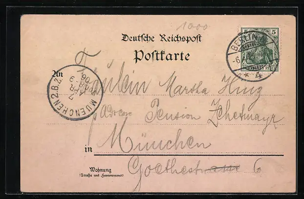 gelaufen 1906, Eckknicke li. unten und re. oben, guter Zustand