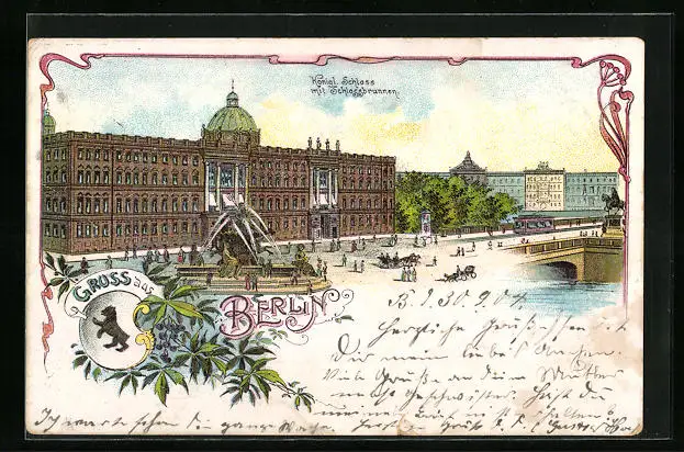 Lithographie Berlin, Königl. Schloss mit Schlossbrunnen