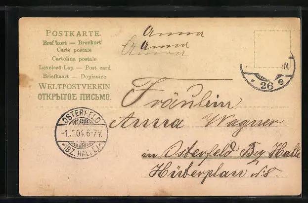 gelaufen 1904, Briefmarke entfernt, guter Zustand