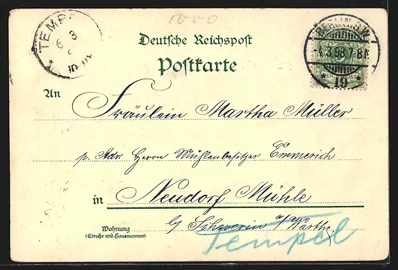 gelaufen 1898, Eckknick li. unten, guter Zustand