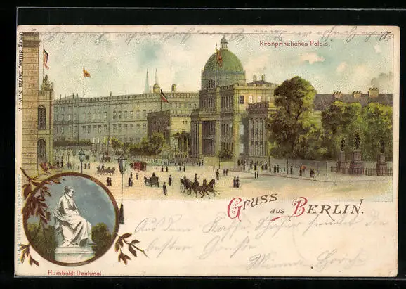 Lithographie Berlin, Kronprinzliches Palais, Humboldt-Denkmal