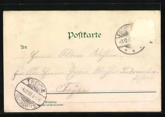 gelaufen 1899, Briefmarke entfernt, rückseitig Oberflächenschaden, guter Zustand