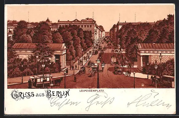 Lithographie Berlin, Leipzigerplatz, Strassenbahn